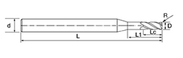 | Серия инструментов | Диаметр | Радиус | Угловой радиус | Длина CR | Эффективная длина | Общая длина | Диаметр хвостовика | |||
