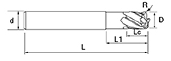 | Серия инструментов | Диаметр | Радиус | Угловой радиус | Длина CR | Эффективная длина | Общая длина | Диаметр хвостовика | |||