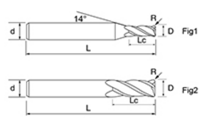 | Серия инструментов | Диаметр | Радиус | Угловой радиус | Длина CR | Эффективная длина | Общая длина | Диаметр хвостовика | |||